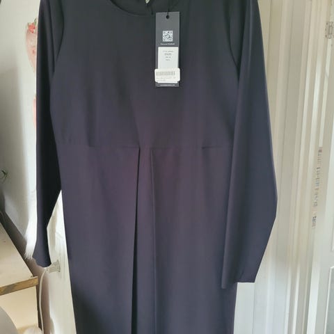 Virkelig fin kjole i sort glimmerstof med sildebensmønster ( glimmer kommer dsv ikke til sin ret på billederne.)