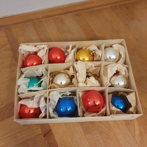 Meget fine kulørte julekugler af ældre dato … fra da far var dreng.