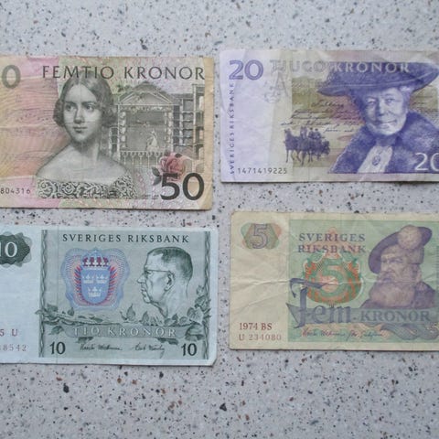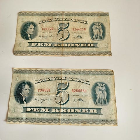 2 svensk penge sedler 5 kr.