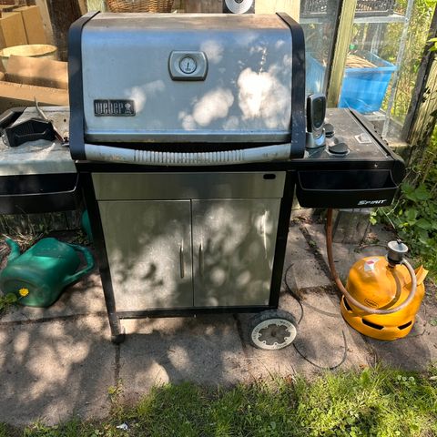 Køb lille billig brugt Weber gasgrill med sideplader inkl. rulle vogn / stativ