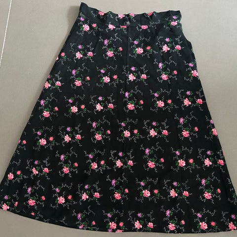 Flot og sommerligt sæt med blomsterprint. Nederdel plisseret str. S. Elastisk linning. Med innerfor. Bluse str. M. Kan afhentes i Viby J eller sendes på købers regning.