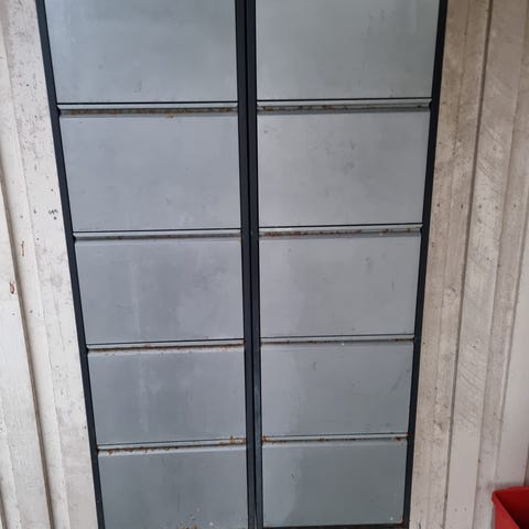 Et meget pænt Skoskab i stål sælges for kun 150 kr
