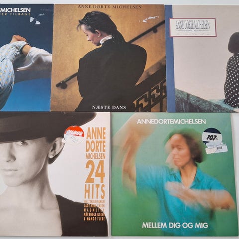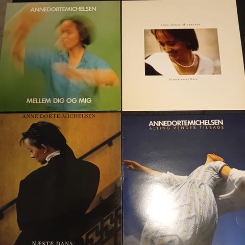 4 lp’er med Anne Dorte Michelsen, pladerne fine vg+, cover fine vg+, samlet pris 100 kr. forsendelse kan aftales.