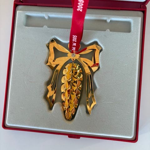 Georg Jensen 2002 Julepynt ornament i guld. Designet som en dekorativ julefigur til juletræet. Fremstillet i metal med en guldfinish. Egnet til brug som juledekoration i hjemmet.