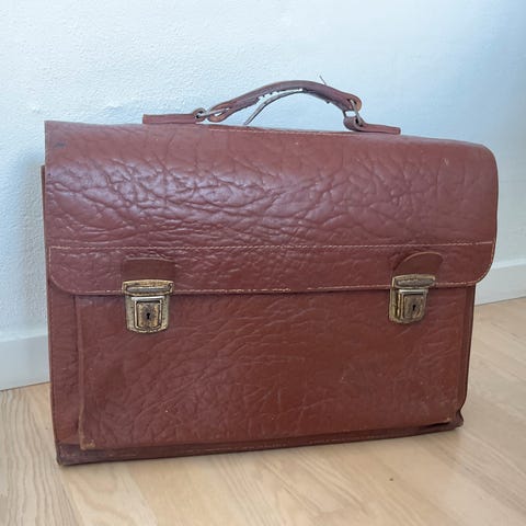 JAGTTASKER, Kernelæder, To retro jagttasker i kernelæder, en lys og en mørk.
