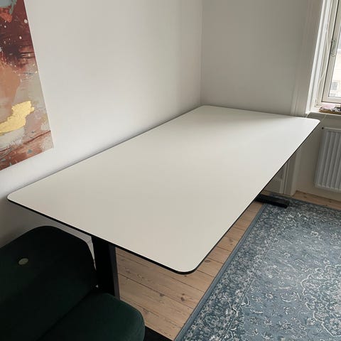 Det er et konge bord. Virkelig robust. Nanolaminat plade og krom stel. Hæve sænke. Nypris 10000