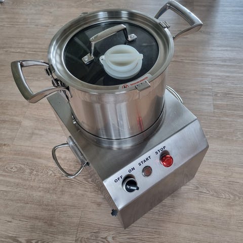 Metal manual pasta maker designed for rolling and cutting dough to make fresh pasta. Features adjustable thickness settings and a hand crank for operation. Suitable for home kitchen use.