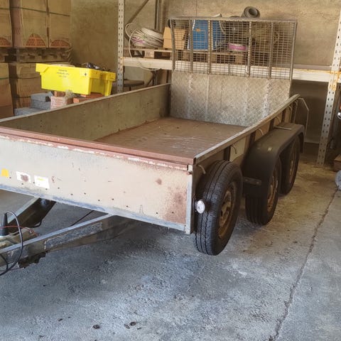 Pæn og velholdt maskintrailer brugt meget lidt altid opbevaret indenfor. Alt er ok.
