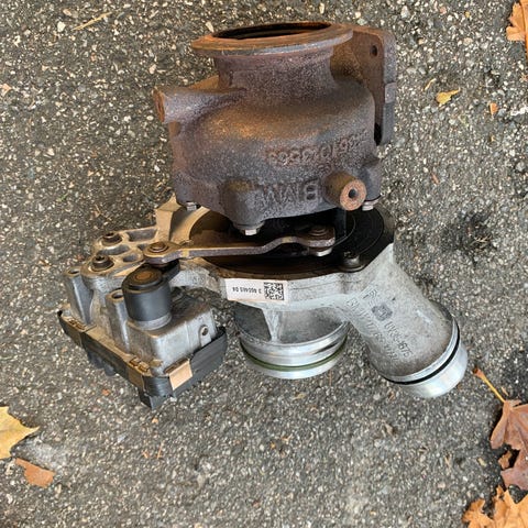 Original turbo til N47 2.0d - skal renoveres, kompressionshjulet skal udskiftes.