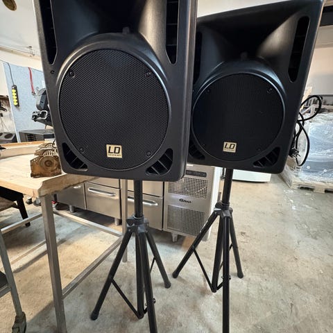 LD Systems LD SAT 42 højttaler med en effekt på 60/100 watt og en impedans på 10 ohm. Højttaleren er sort og velegnet til lydforstærkning i forskellige miljøer. OBS der er den ene