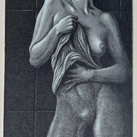 Radering 25/150, signeret i bly, Jørgen Boberg (1940-2009), motiv: Kvinde tilfredsstiller sig selv, b: 38 h: 53, motiv br.23 x hjd.16, uden ramme. NB. Sendes ikke da litografiet er på så kraftigt papir, at det ikke kan rulles, men kan ses i Finlandsgade på Amager!!
