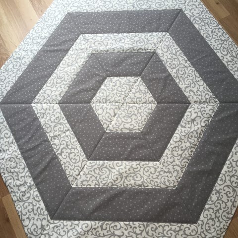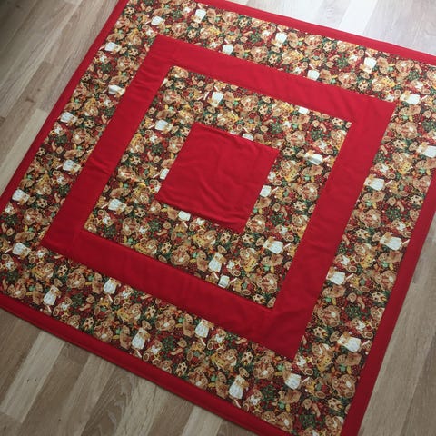 Patchwork tæppe - det er nyt og klar til juleaften. Fint syet. Den røde farve er mørk og flot - det ses ikke helt på billederne.