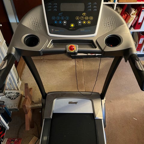 Løbebånd med elektronisk styring, sort farve. Velegnet til indendørs træning og konditionstræning. Har et display til visning af træningsdata og flere hastighedsindstillinger. Kompakt design til hjemmebrug.