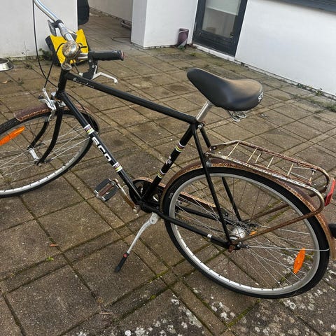 Cove Superbe Citybike, grågrøn med patina, 28 tommer hjul, 55 cm stel, 3 indvendige gear, alm brugsspor, blanke fælge, køreklar med lås, kr 400,-