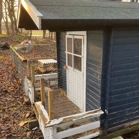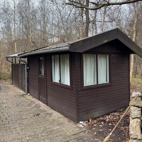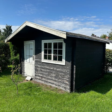 Sommerhus med tilhørende terrasse og have. Sommerhuset er enkelt opført med udendørs siddeplads, herunder havebord, stole og parasol. Området omkring sommerhuset inkluderer græsplæne og beplantning. Terrassen er delvist afskærmet med hegn og har plads til havemøbler. Velegnet til udendørs ophold og fritidsbrug.