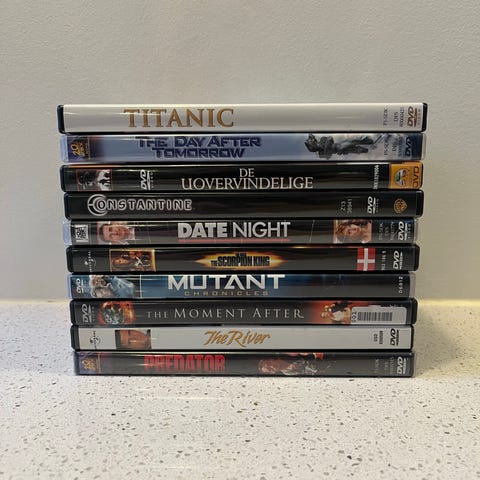 Samling af 14 DVD-film med forskellige titler og genrer. Indeholder blandt andet Harry Potter-serien, Sahara, Terminator 2, The Mummy, og flere. Filmene er i DVD-format og leveres som en samlet pakke.