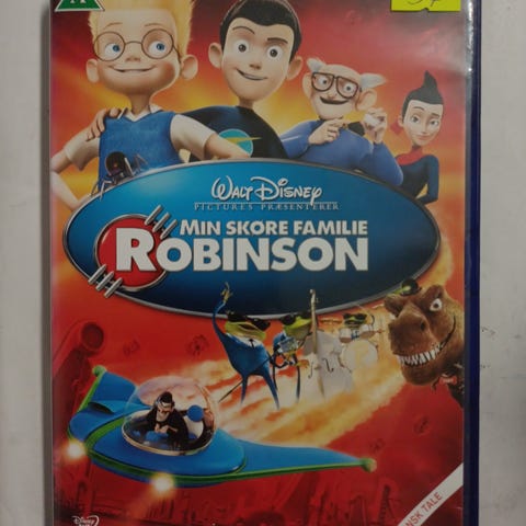 Walt Disney Robinson Familie, Tintin og Hajsøen, Biler DVD-film. Indeholder tre film: Robinson Familie, Tintin og Hajsøen, samt Biler. Filmene er på DVD-format og er velegnede til familier og børn.