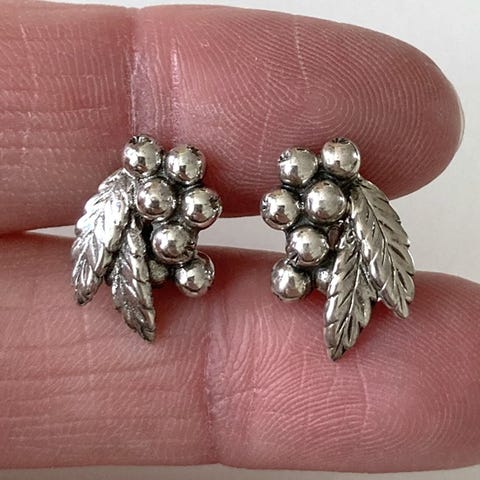 Sterling sølv hjerte ørestikker med facetslebet bjergkrystal. Design af finske juveler Karl Laine. Vintage.