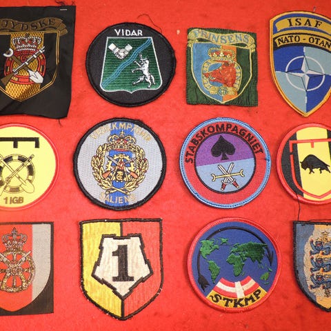 12 DANSKE MILITÆRE STOFMÆRKER - ALLE FOR KR. 150 (LOT C-1)