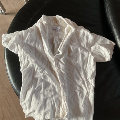 Hvid herre skjorte, flot, bomuld og polyester "Minimum" lidt faconsyet, monogram "M" på venstre side af brystet, hals str. 44-46 cm, ved oprullet ærmer er der strop og knap til at holde dem fast, ny, aldrig brugt