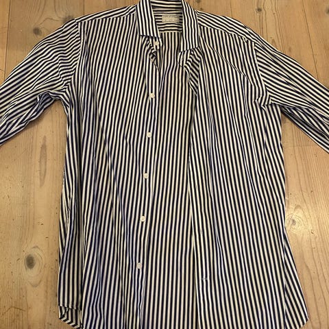 Tiger of Sweden Denim Skjorte i størrelse S til mænd. Skjorten er blå og lavet af denimlook blødt materiale. Den har en klassisk krave og knaplukning foran. Velegnet til afslappet og hverdagsbrug.