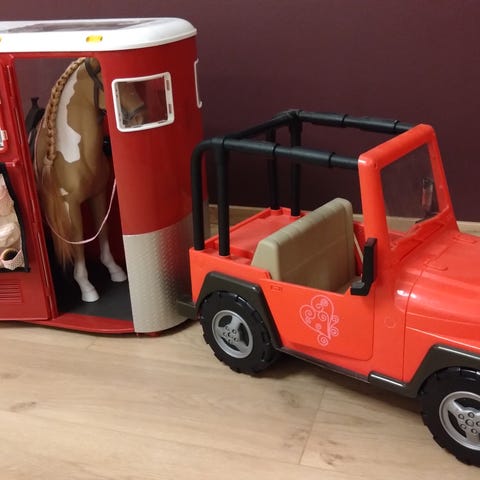 Our Generation hestetrailer med meget tilbehør som vist på billederne. Pris 400kr.