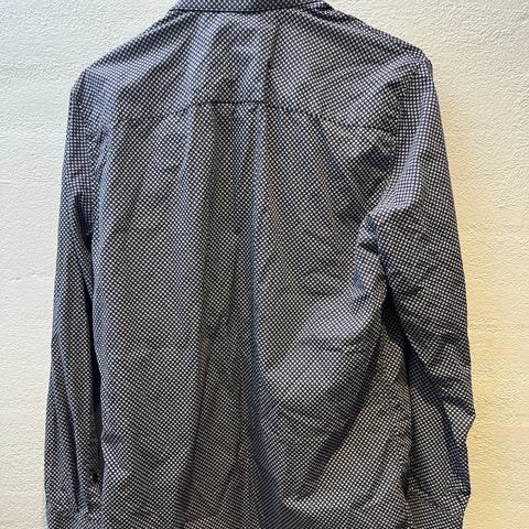 Sælger en flot Matinique herreskjorte i hvid med små mørkeblå mønstre. Klassisk Easy Care-model, perfekt til både hverdag og arbejde. Let og behagelig at have på.