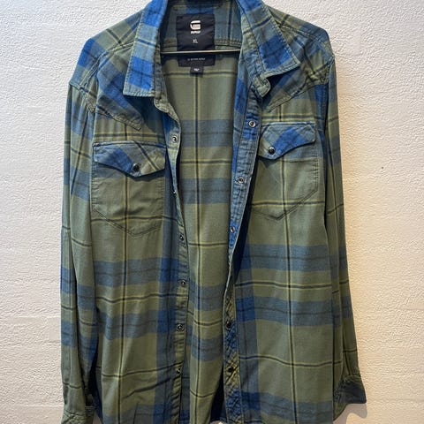 Sælger en fed ternet G-Star Raw skjorte i størrelse XL. Klassisk G-Star-look med tydelige rå detaljer, trykknapper og brystlommer – perfekt både til hverdagsbrug og et mere casual råt outfit.