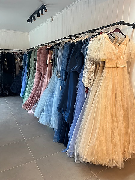 Sælger en masse smukke kjoler til engros priser. Vi lukker vores kjolebutik og skal derfor sælge ud af alle kjolerne vi har i vores butik