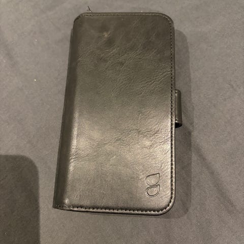 Apple mobilcover i sort læder med kortholderfunktion. Coveret har flere lommer til kort og en plads til ID-kort. Designet til at beskytte telefonen og samtidig give mulighed for opbevaring af kort. Materialet er læder, og coveret har en lukning med magnetflap.