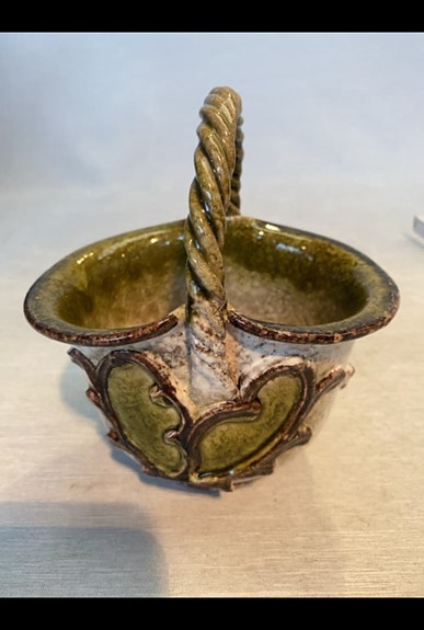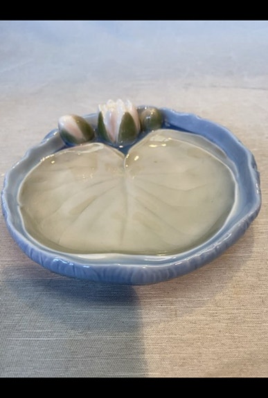 Skålen har en rund form med en hævet, dekoreret låg. Den er lavet af porcelæn og har blomsterdesign i farverne violet, gul og orange. Låget prydes af en dekorativ hank, der ligner et sneglehus. Guld detaljer fremhæver skålen.,Afhentes i:,Røde Kors Horsens (615),Bemærk at mail, chat og beskeder ikke besvares, og varen skal købes på knappen "Gå til varen"