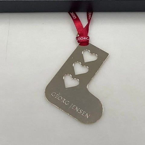Georg Jensen Gavemærke - Julesok med Hjerter. 5 cm højt. Forgyldt messing. Flot som ophæng på juletræ. Designet af Georg Jensen Team.