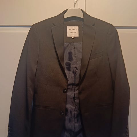 Habbitjakke, HogM, str. findes i flere str., marinblå, polyester, viscose og uld, Næsten som ny, super flot marineblå habbitjakke (belysningen på billedet gengiver desværre ikke farven korrekt), kun brugt til en konfirmation (også er den desværre blevet for lille til sønnen). Jakken er str 170/14+ (sønnen var på det tidspunkt 170 cm høj).