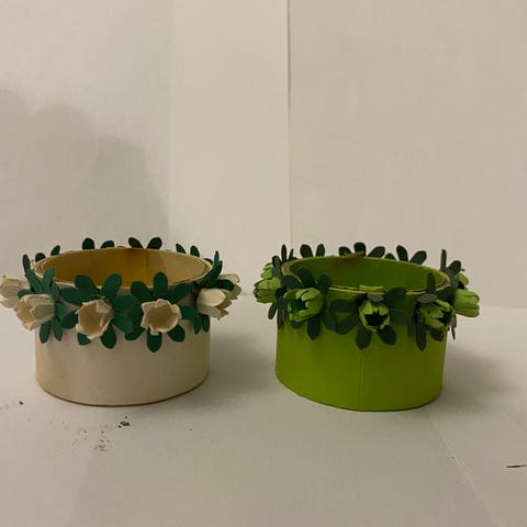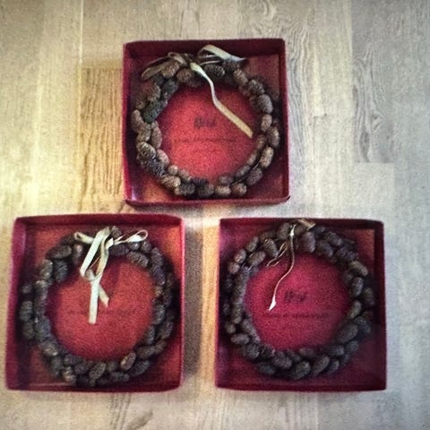 2 fine lys kranse med små lyserøde blomster fra Erstad & Stubbe-Teglbjærg.