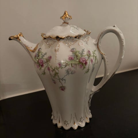Smuk glaskande fra Theresienthal Bavaria med elegant blomsterdekoration og ravfarvet hank.