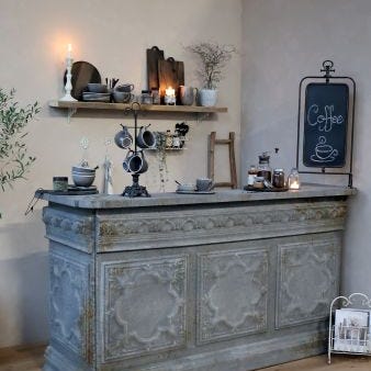 Vintage disk til butik inkl. 1 hylde, antique hvid.