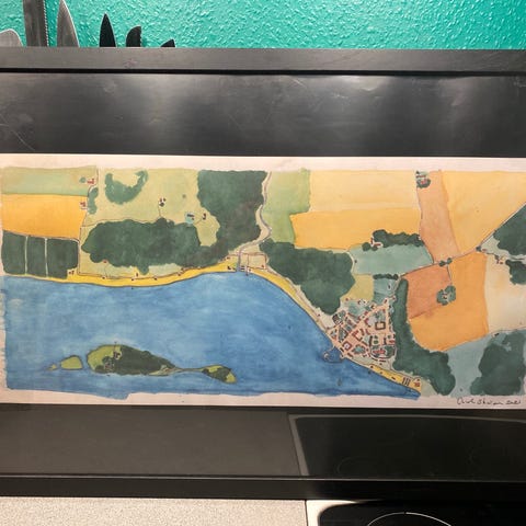 Akvarel, Niels Johan Udby, motiv: Landskab, b: 71 h: 51, Strand på Fyn