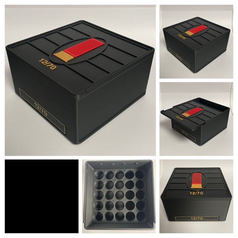 black edition, black friday, ammo, ammunitionsboks, ammo boks, 12/70, haglpatroner, ammunition, opbevaringsboks, jagt, skydeudstyr, 3d print