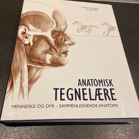 Anatomisk Tegnelære bog med fokus på anatomi af menneske og dyr. Indeholder detaljerede illustrationer af muskler, skeletter og bevægelsesmønstre for både mennesker og dyr. Cover er lidt slidt men ellers i god stand