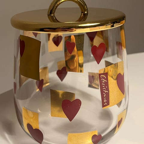 Holmegaard Glas Krukke med Julemotiv og Guld låg