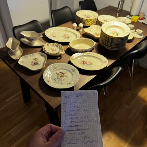 Frijsenborg stel med guldkant. Meget velholdt. Kan evt sælges delvist men helst samlet. Prisen pr del snakker vi, men det er langt det billigste at købe det hele