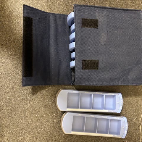 Smarte / praktiske doseringsbokse til 1 uge og 4 gange daglig - ugedagene er på tysk.