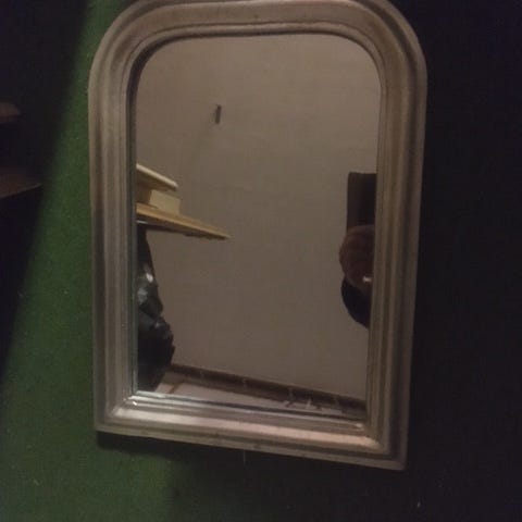 Spejl med "guld" ramme klar til ophængning. Måler 45 cm i længden.