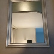 Spejl med sølvramme måler 40 cm i højden. Klar til ophængning.