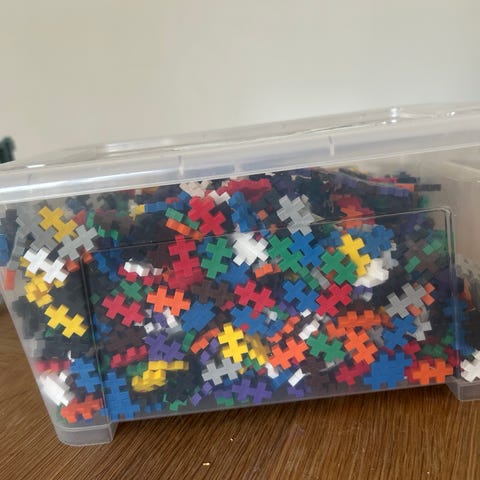 Plus Plus Blandet Børnelegetøj bestående af mange små byggeklodser i forskellige farver. Klodserne er lavet af plast og kan bruges til kreativ leg og konstruktion. Velegnet til børn.