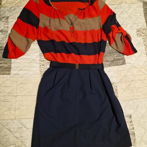 Hverdagskjole i størrelse L til kvinder. Kjolen er blå og lavet af viskose materiale.