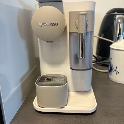 Nespresso Vertuo Next Value Pack kaffemaskine + mælkeskummer i sort, der kun er brugt få gange og fremstår som ny. Maskinen leveres med 1 års garanti, og kvittering medfølger.