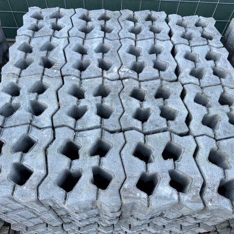 Kommer i plader af 12 (3x4) græsarmerings fliser a 33x33cm, ialt pr. plade 1.33 m2.