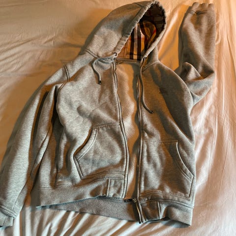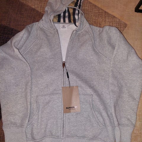 Sælger denne brugte Burberry hættetrøje. Den er blevet brugt en del, men standen er stadig rigtig god. Der er naturligvis lidt tegn på brug, men intet der tager fra helhedsindtrykket. Trøjen er 100% ægte og er købt i Burberry i Holland – kvittering medfølger.
