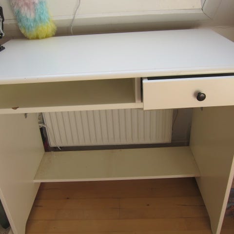 Mindre hvidt skrivebord med 2 hylder